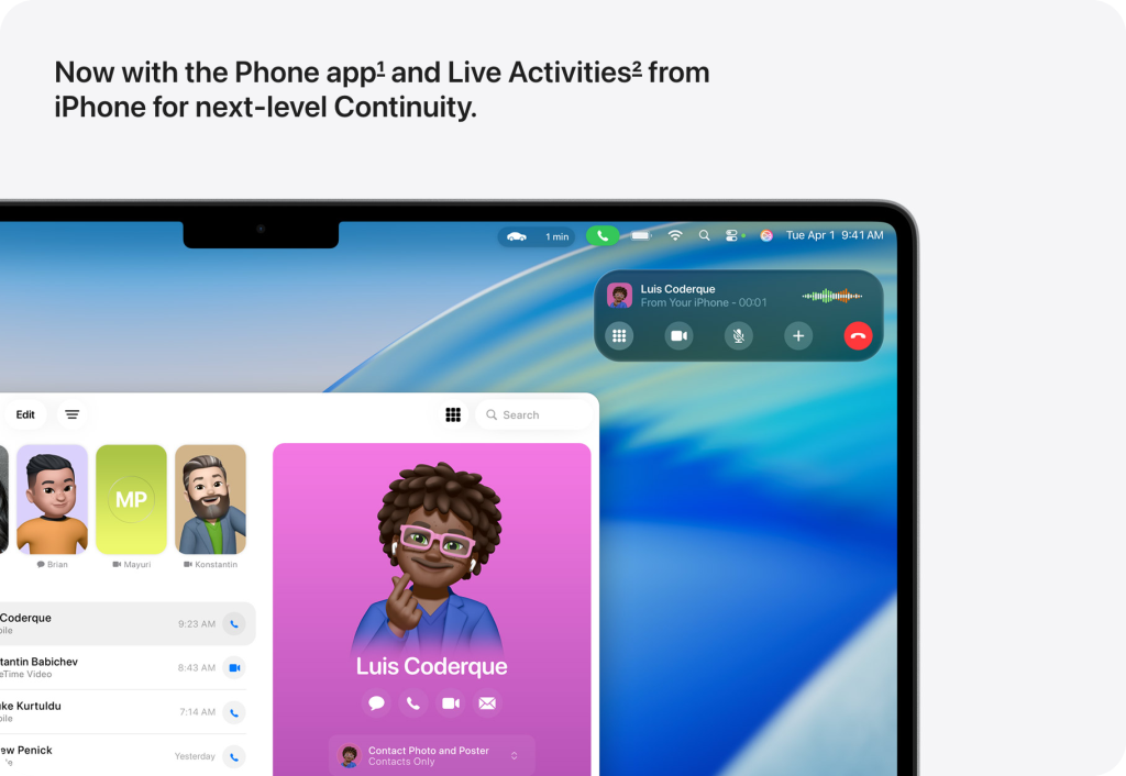macOS 26 Tahoe extends the Continuity feature by bringing the Phone app to Mac. This allows users to receive calls from their nearby iPhone seamlessly. The Phone app on Mac is equipped with similar features to the iPhone app, including functionalities like Recents, Favorites, and Voicemail. Notable updates include Call Screening and Waiting Assistance.