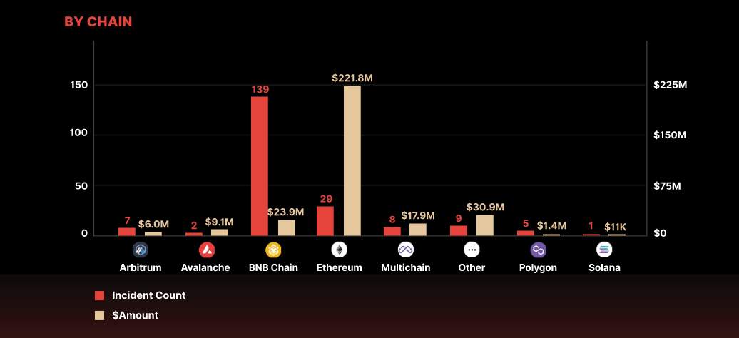 BNB Chain had 139 incidents, the largest number in the first quarter of 2023, CertiK emphasized. Despite having fewer crashes, Ethereum lost $221 million, the most for the quarter.