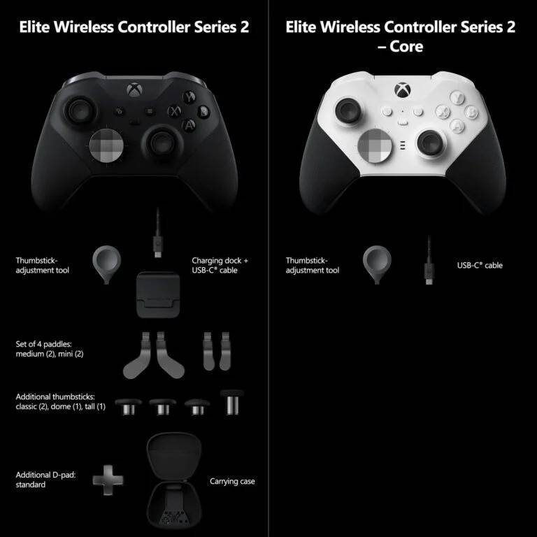Players can purchase a separate Complete Component Pack for $59.99 if they want other accessories like a carrying case and charging dock. By default, the white Core version will come with a USB-C cable and adjustment tool for the joystick.